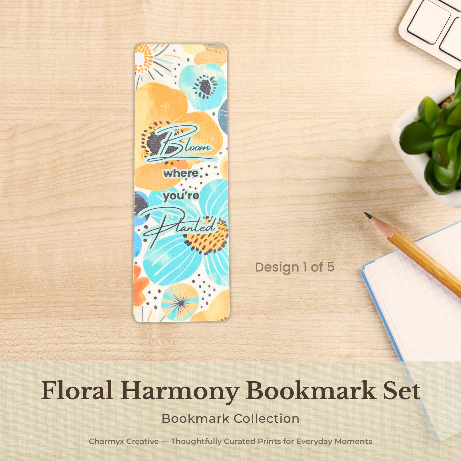 Bring calm and color to your reading moments with the Floral Harmony Bookmark Set — a 5-piece collection of motivational floral designs that inspire you to bloom where you’re planted. Perfect for gifting, journaling, or your next cozy read.