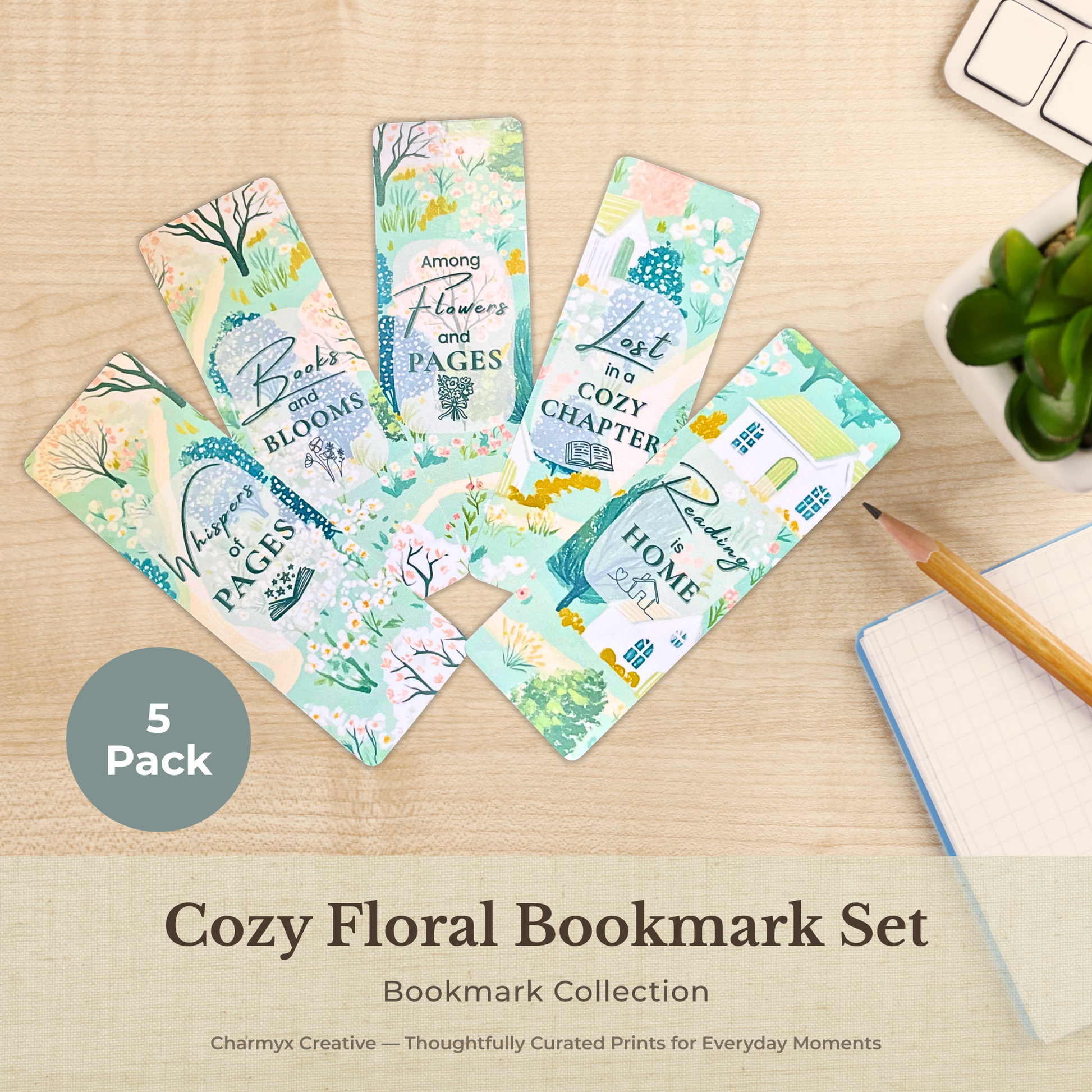 Find peace and poetry in your reading time with the Cozy Floral Bookmark Set — a 5-piece collection of soft watercolor florals paired with heartwarming quotes for book lovers. Perfect for gifting, journaling, or your own reading nook.